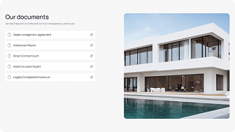 All transactions are securely recorded on-chain, ensuring transparency and preventing tampering. Documentation, ownership structure, projected rental income, and asset details are available directly on the platform, allowing you to make informed investment decisions. This model makes real estate more accessible, liquid, and easier to manage for investors worldwide.