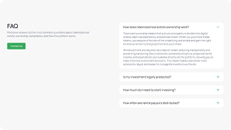 Find clear answers to the most common questions about tokenized real estate, ownership, compliance, and how the platform works.